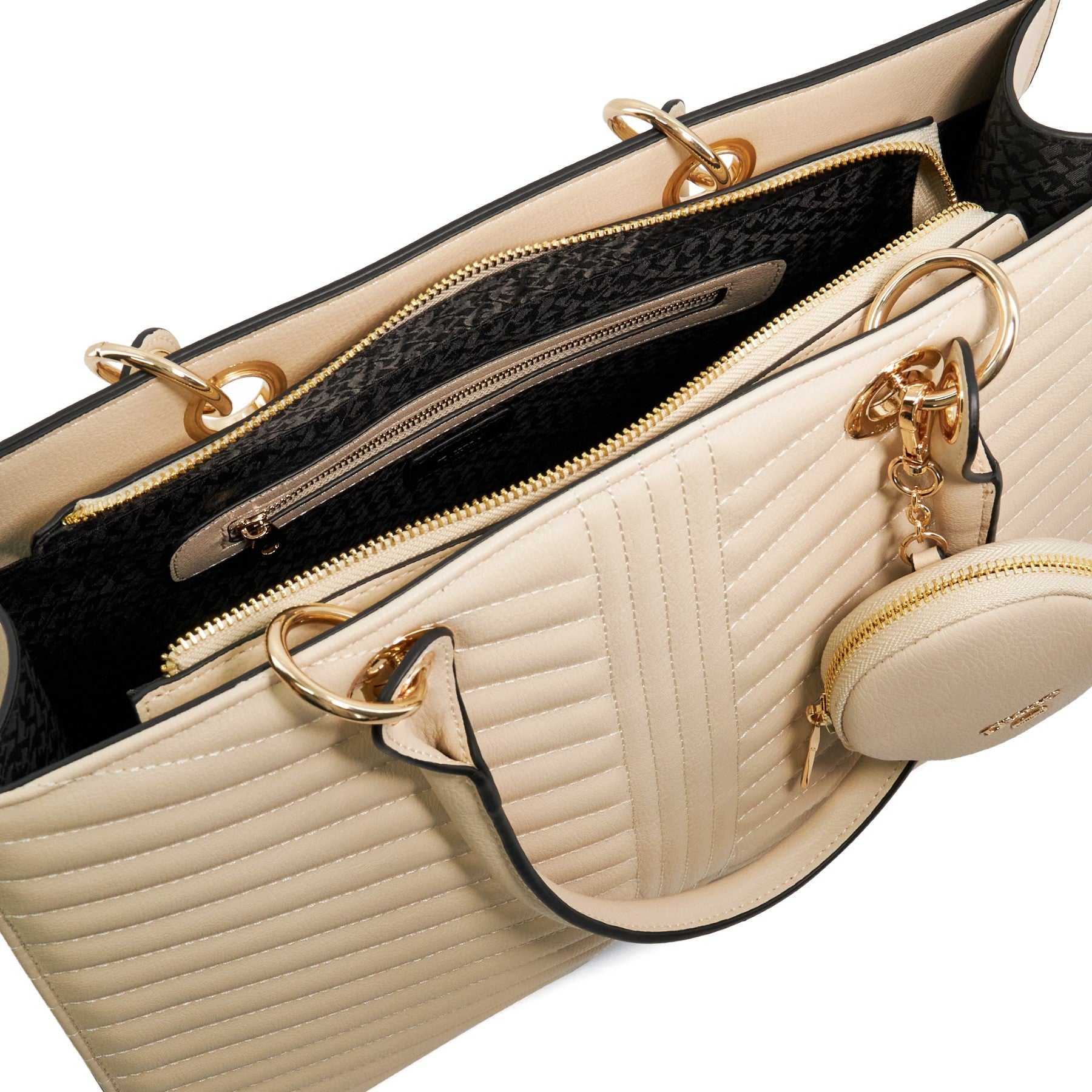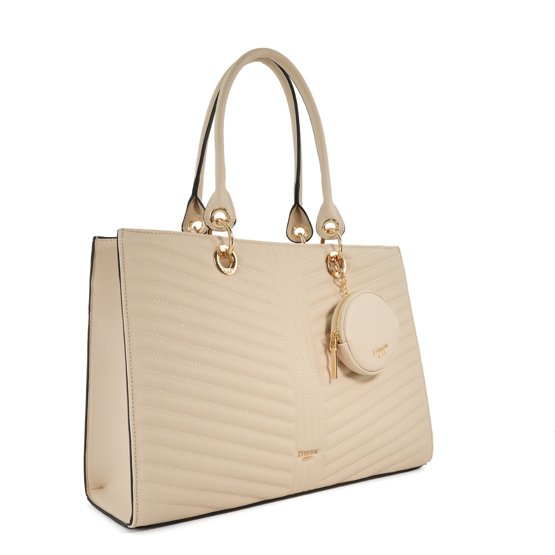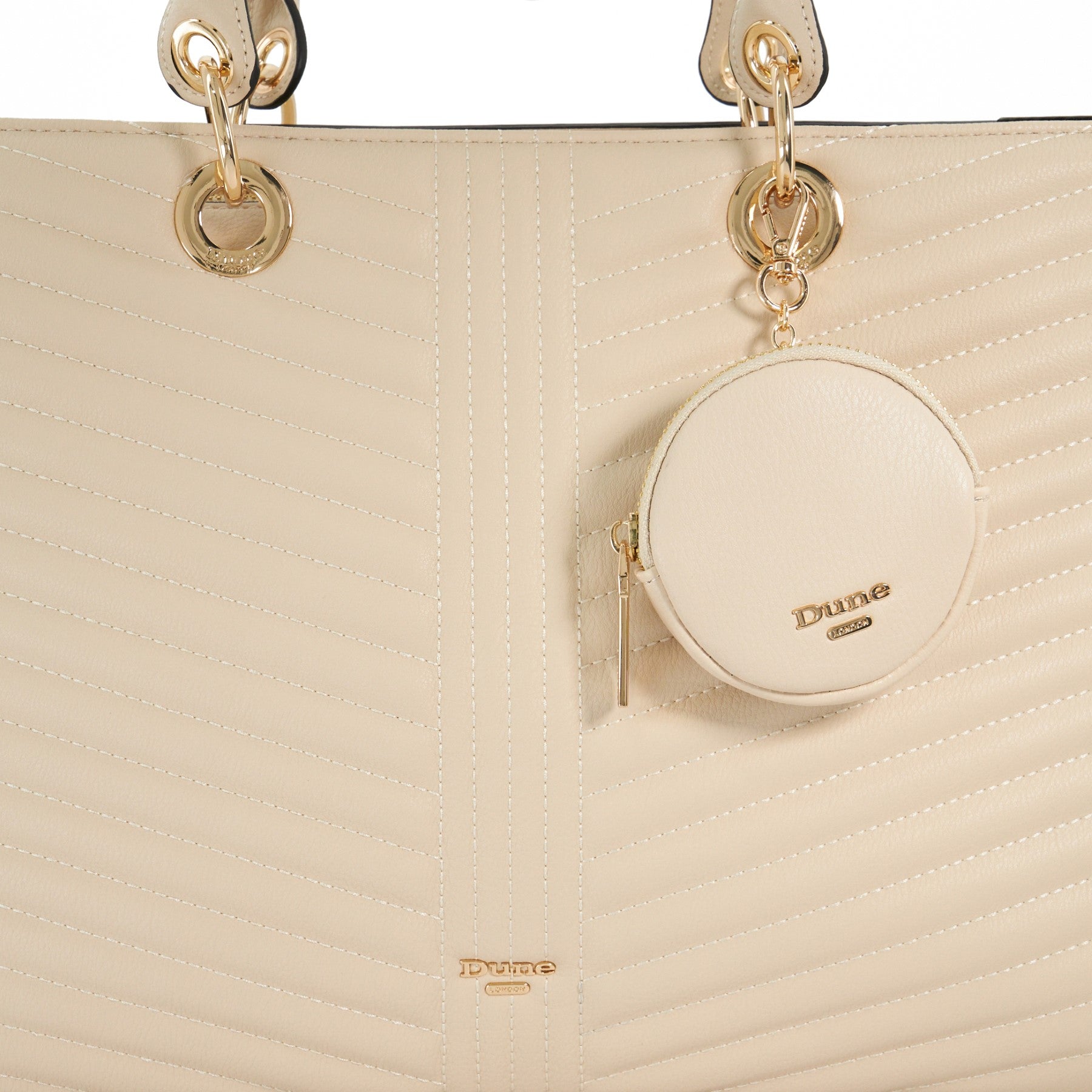 This stylish signature quilted tote is designed for whatever your week has in store. Complete with monogrammed lining  the main compartment accommodates a slimline laptop or A4 notebook. Dazzleo closes via a central gold hardware zip  that matches back to the logo on the front of the bag and detachable coin purse.
