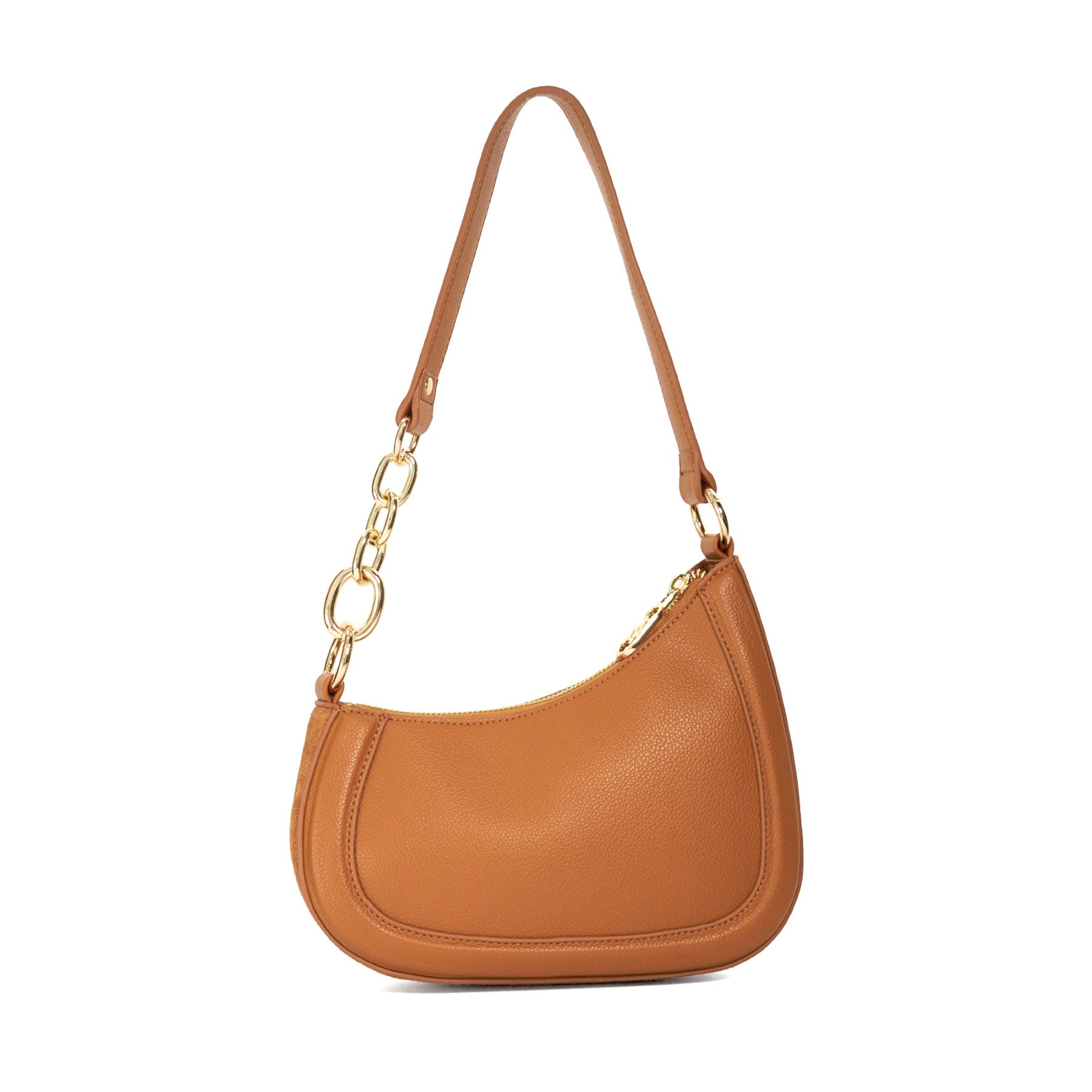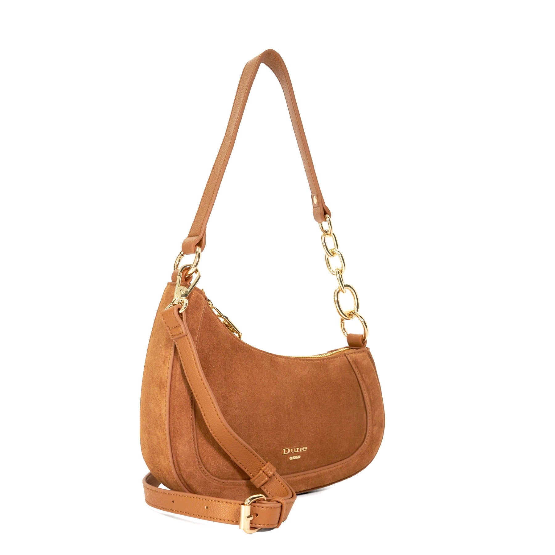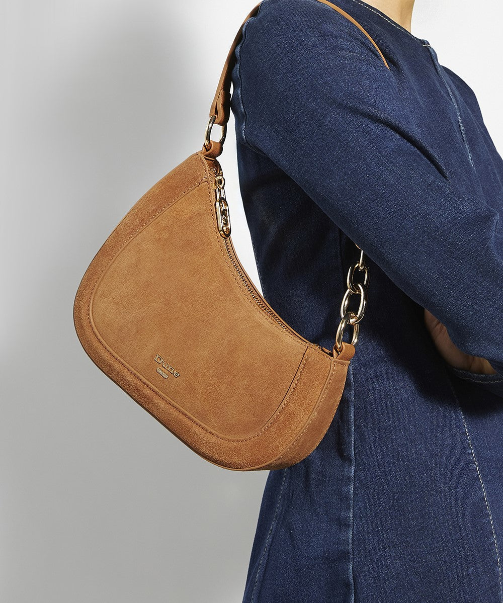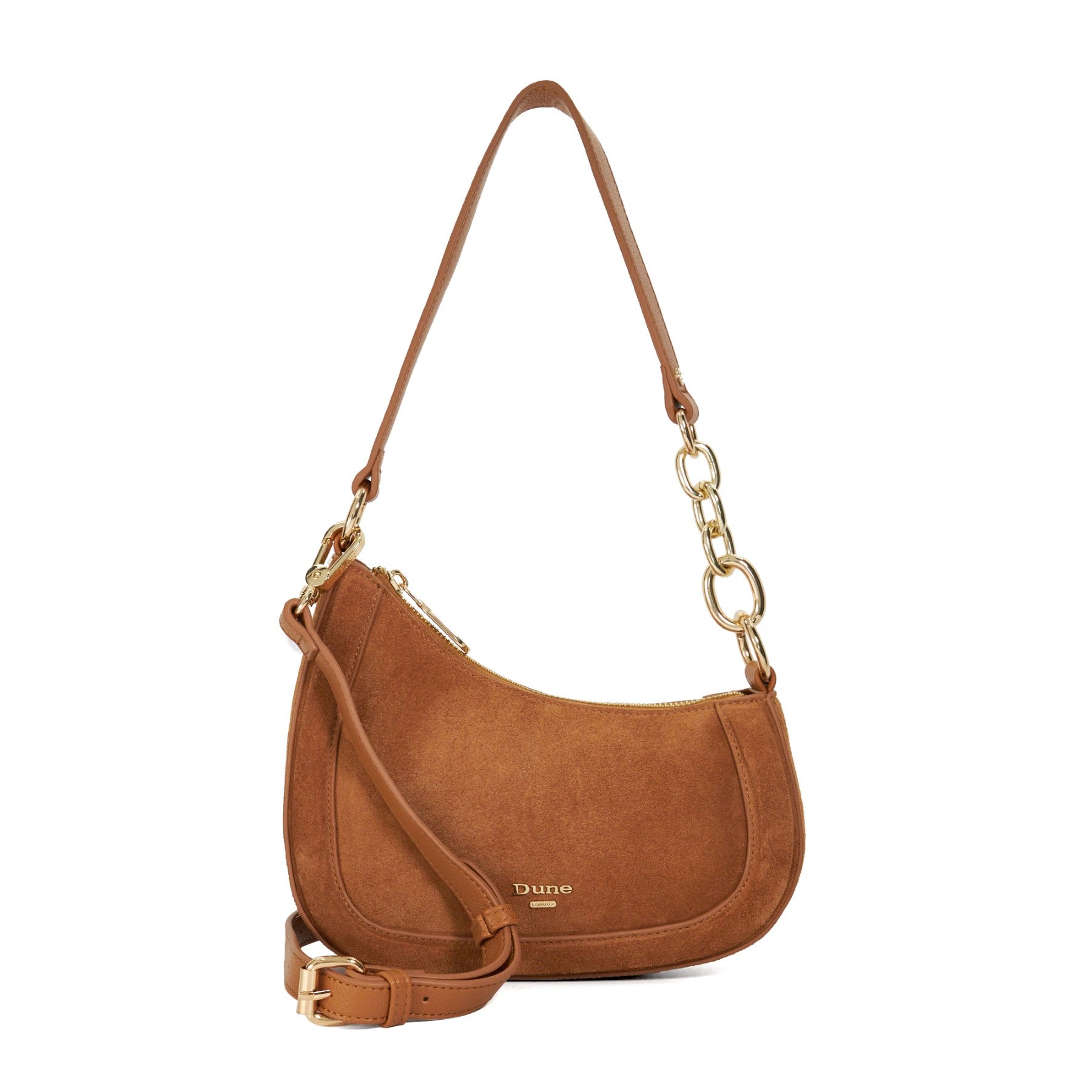 This angular sculpted silhouette has been designed to sit under the arm when worn on the shoulder. Combining comfort and style the part chain handle held in placed with ringlets on either side has been crafted from gold chain links. Featuring our signature branding on the front the detachable shoulder strap allows this versatile bag profile to be worn cross-body.