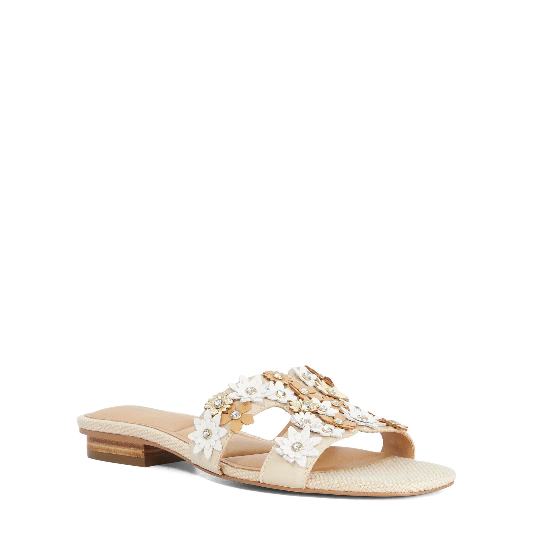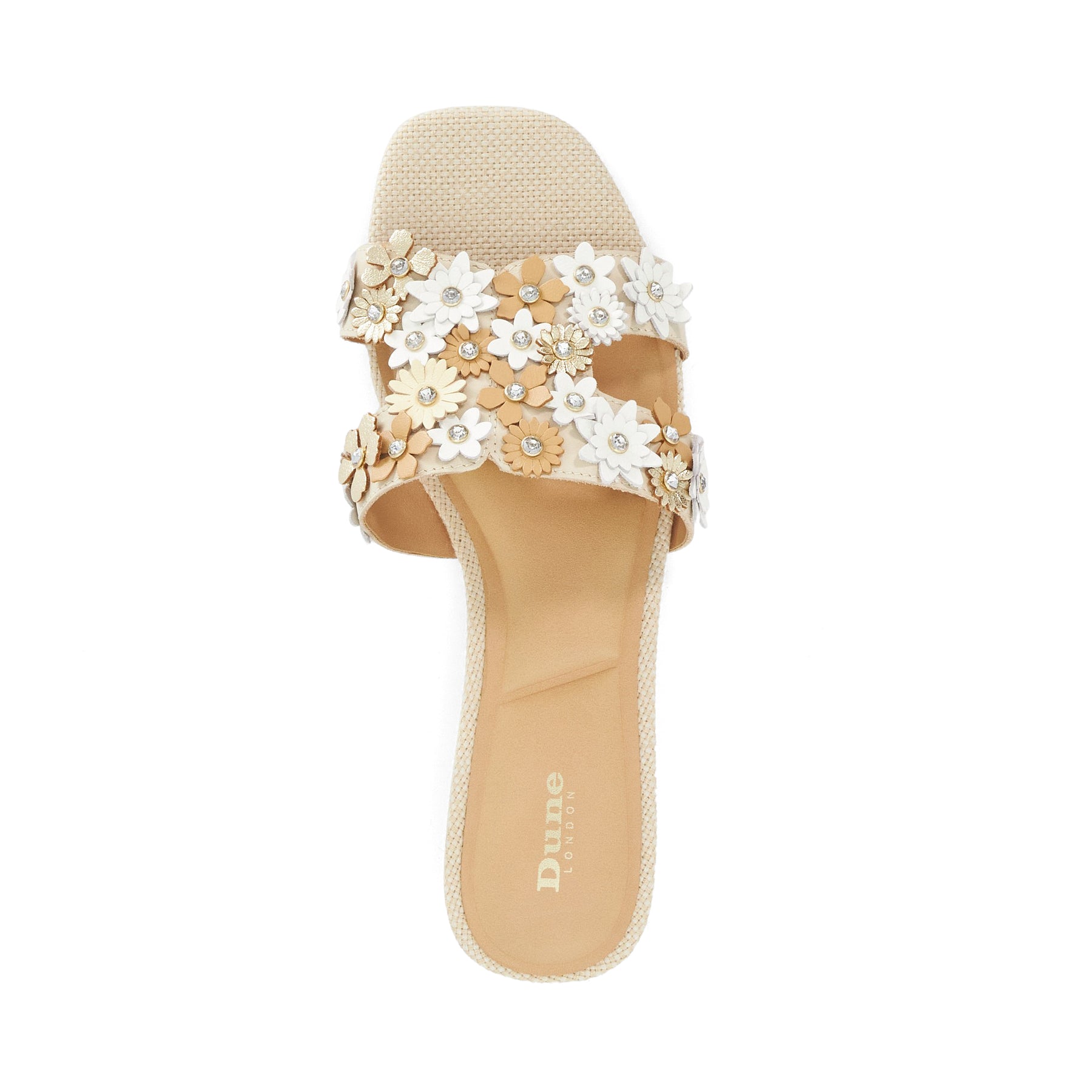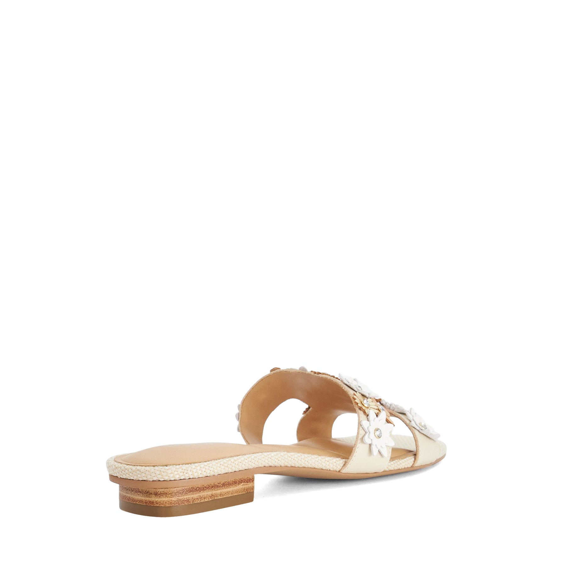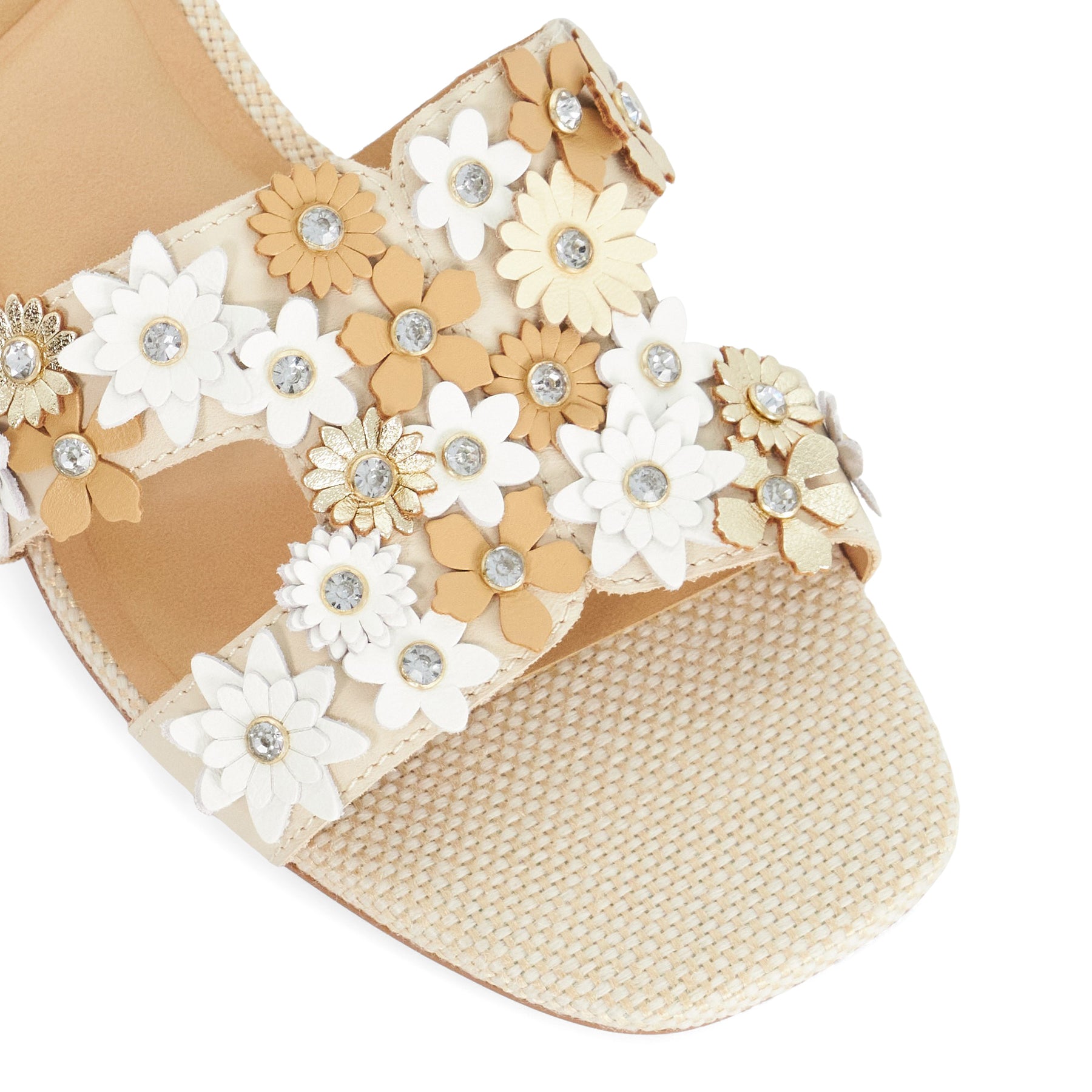 Introducing Loupes our slip-on sandal crafted with smooth leather straps and delicate floral embellishments in tonal hues. The feminine silhouette sits on a low stacked heel. Effortless and elegant it's a considered choice for elevating summer looks.
